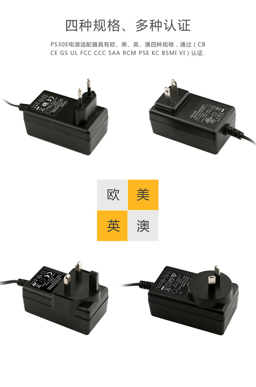 目前的電源適配器產品的效率能夠達到70%以上,更有一半的產品的效率能夠達到85%以上,并且經過國家CCC、歐盟CE、美國UL認證,大家可以放心選購。