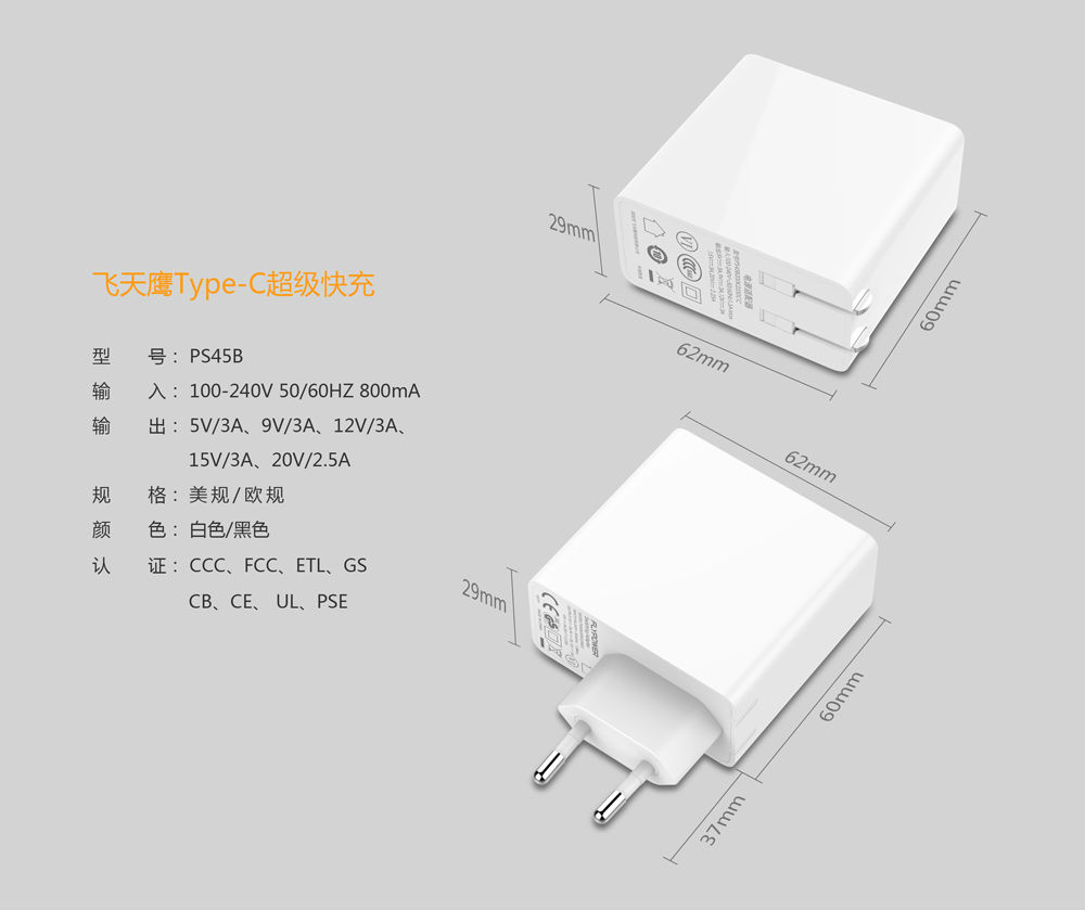 深圳飛天鷹科技是國際高新技術企業,有著15年的電源研發生產經驗?目前有超過200人的技術研發團隊,月產能在300萬只以上,是目前國內主要的PD快充充電器生產廠家之一,規格多種,認證電源,軍工品質,值得信賴。